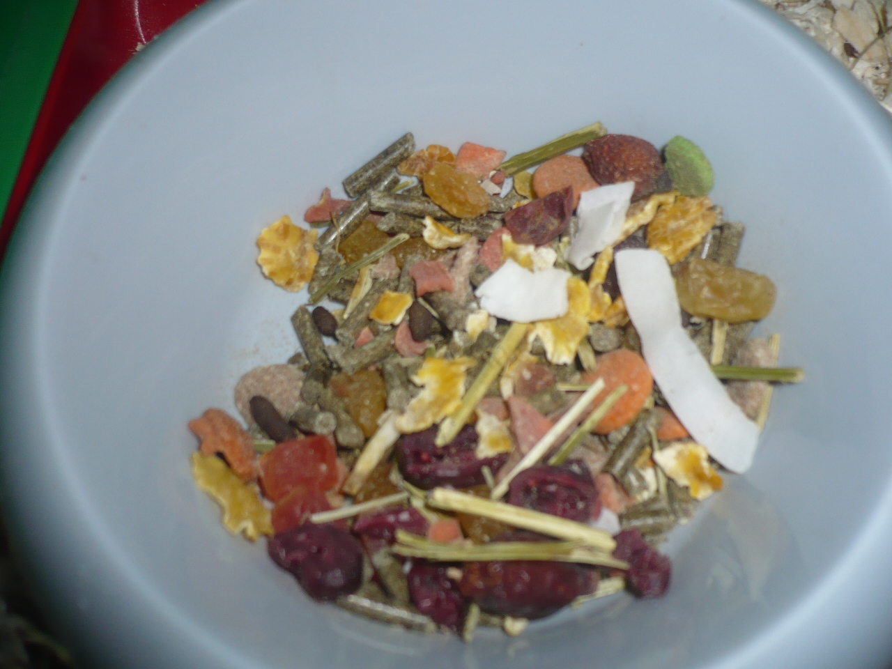 Aliments pour chinchilla composés de granulés tous identiques (de type pellets) pour éviter qu'il ne trie la nourriture.