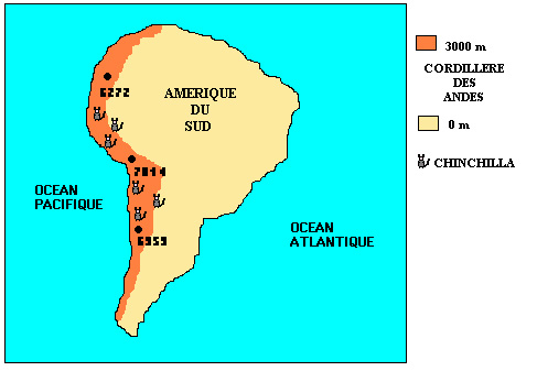 Le chinchilla est originaire d’Amérique du sud. Il a aujourd’hui presque totalement disparu de la Cordillère des Andes qui s’étend sur les pays de la Bolivie, l’Argentine, le Chili et le Pérou